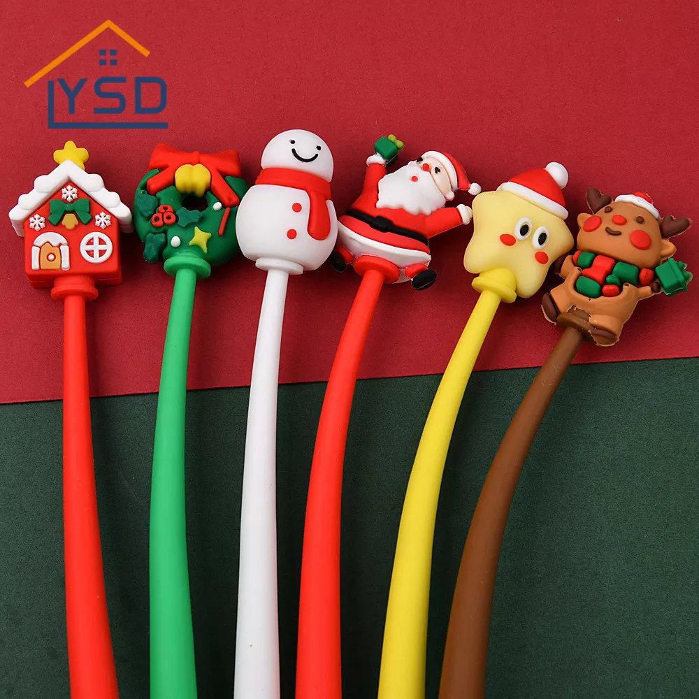 Myöhemmin kasvoimme ja käytimme "kypsiä" kuulakärkikyniä ja mustekyniä. Ne pehmeät kumikynät unohdettiin kynäkotelon pohjalle, mutta ne löydettiin uudelleen eräänä päivänä vanhoja tavaroita siivottaessa. Yritin ravistaa joulupukin kynää; glitter oli hieman paakkuuntunut ja neste oli hieman keltaista, mutta kun lumihiutaleet putosivat jälleen kevyesti peittäen Joulupukin punaisen hatun, sydäntäni kosketti silti pehmeä kohta.