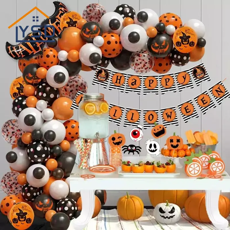Klassiset oranssit ja mustan värin sovitussarjat (kuten 120 sarjaa, mukaan lukien konfettipallot ja hämähäkki alumiinielokuvapallot) voivat nopeasti rakentaa teeman taustaseinän;