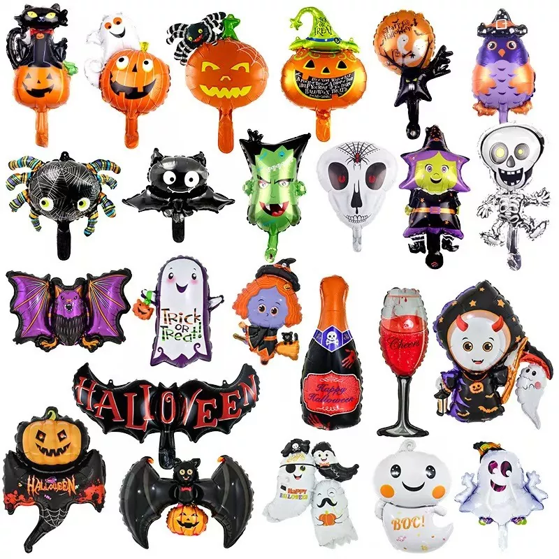 1. Alumiinifoliopallot: Valmistettu metallisista kiiltomateriaaleista, kuten kalloista, lepakoista, kurpitsista ja muista muodoista, joiden koko on jopa 40 tuumaa (noin 100 cm). Siinä on automaattinen tiivistyssuunnittelu ja se tukee kelluvaa heliumia (kestää 6–14 tuntia) ja manuaalista inflaatiota toistuvaa käyttöä varten.