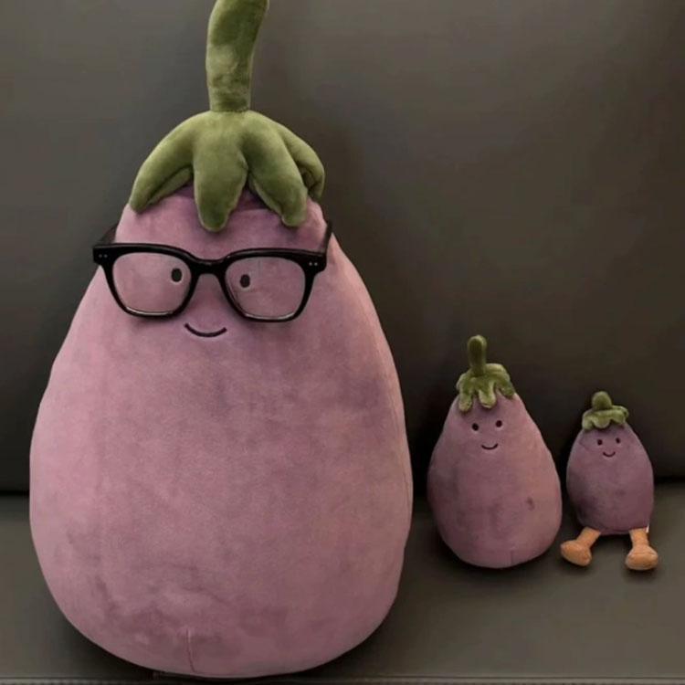 YSD-valmistajan valmistama Haalistumaton munakoiso-pehmolelumme on suunniteltu näyttämään aivan oikealta munakoisolta. Se on klassinen violetti body ja vihreä toppi, värit ovat luonnollisia eivätkä haalistu helposti. joten sekä lapset että aikuiset pitävät siitä ensi silmäyksellä.