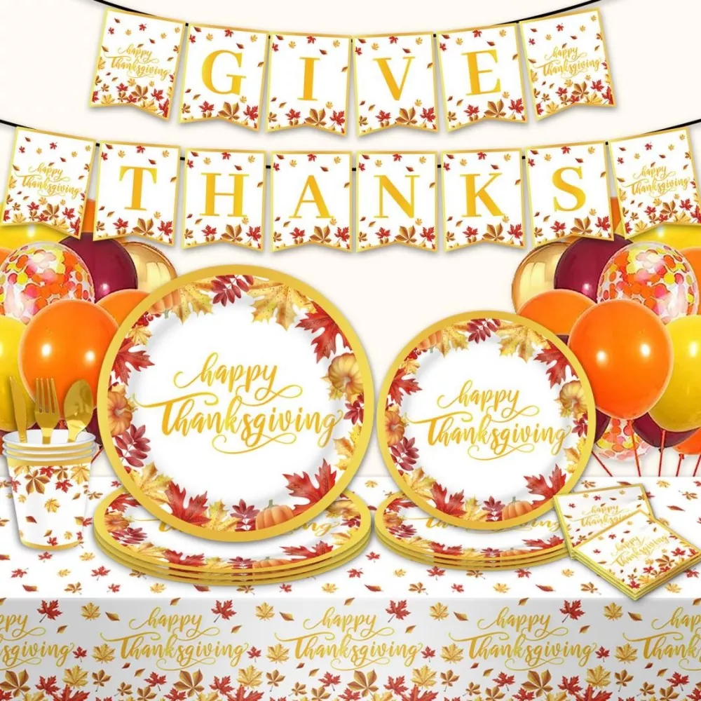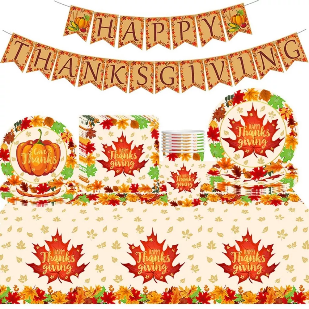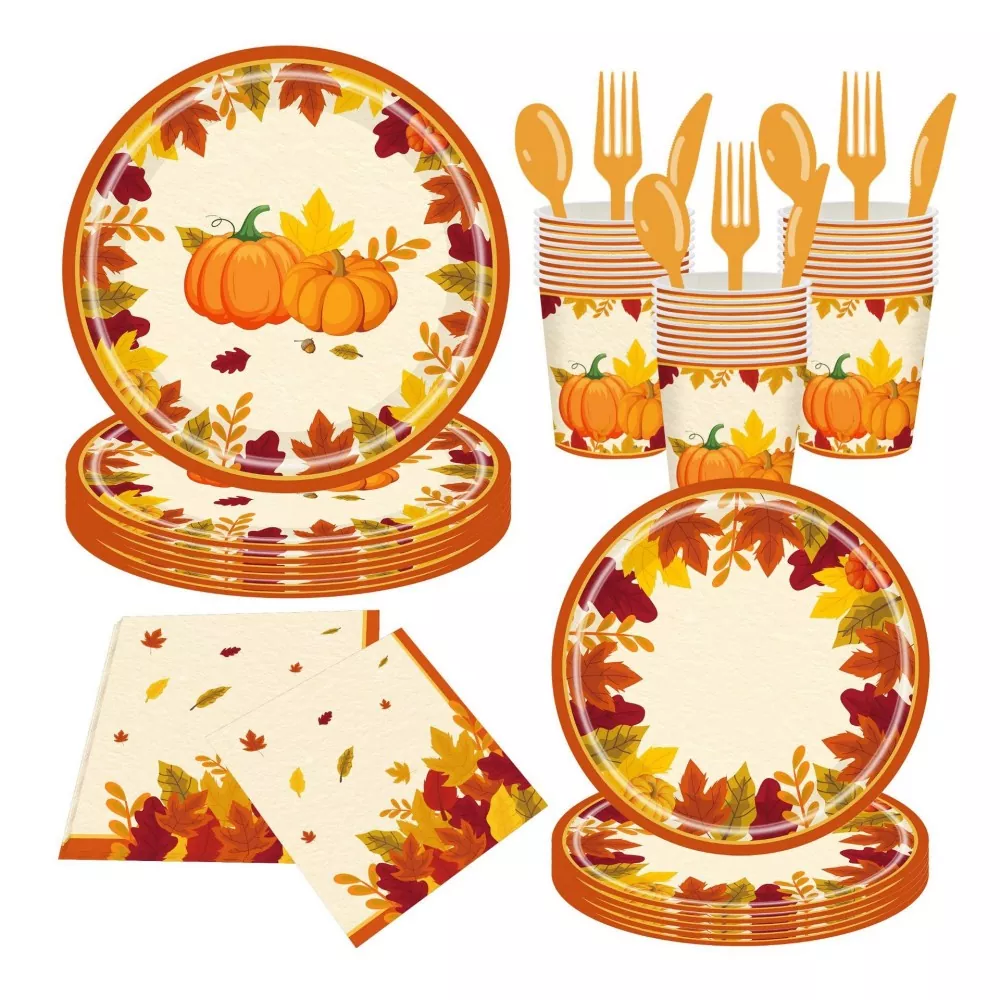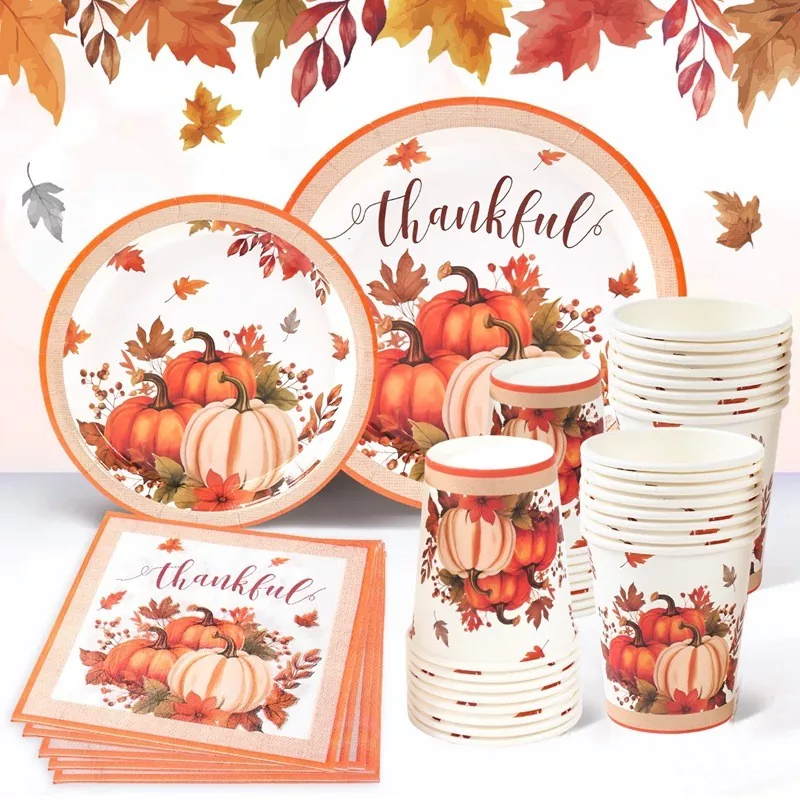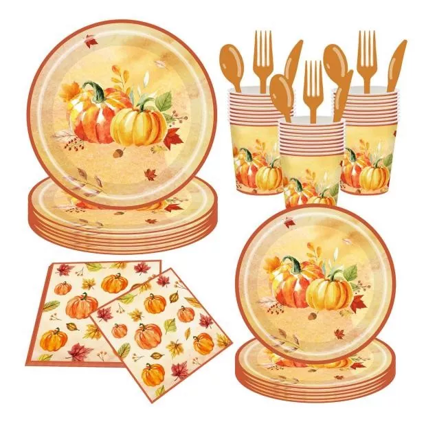 Kiitospäivän kertakäyttöastiasetillä on laaja valikoima sovelluksia perhejuhliin asti. Tämä setti sopii erinomaisesti myös kiitospäivänä tapahtuviin yrityksen tiiminrakennustapahtumiin. Se on kevyt ja helppo kuljettaa mukana, täydellinen kokouksiin tai ulkopiknikille. Kiitospäivä-tapahtumia järjestäville kouluille tämä setti on turvallinen ja kätevä oppilaille, mikä vapauttaa opettajat tiskaamisen huolestuttamisesta.