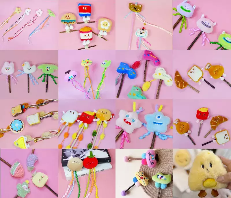 Tämä kissan teaser omaksuu arvokkain sarjakuvamuodon, värikkäillä tupsuilla ja kelloilla, ja visuaalinen ja kuulokaksistimulaatio herättää kissan huomion. Tassel-materiaali on pehmeä välttämään lemmikin naarmuuntumista, ja sisäänrakennetun kellon terävä ääni voi stimuloida kissan uteliaisuutta. Tangon runko on valmistettu kevyestä ja kestävästä ABS -muovista, jonka pituus on kohtalainen, mikä on kätevä omistajalle hallita. Samanaikaisesti se on testattu kestämään kissojen usein naarmuuntumista ja puremista.
